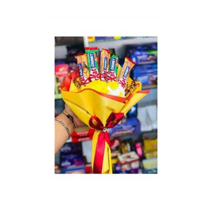باقة ورد مع شوكولاتة تحتوي على الشوكولاتة والورد، هدية للنحاح او اي مناسبة سعيدة. تتوفر بعدة اشكال وأحجام